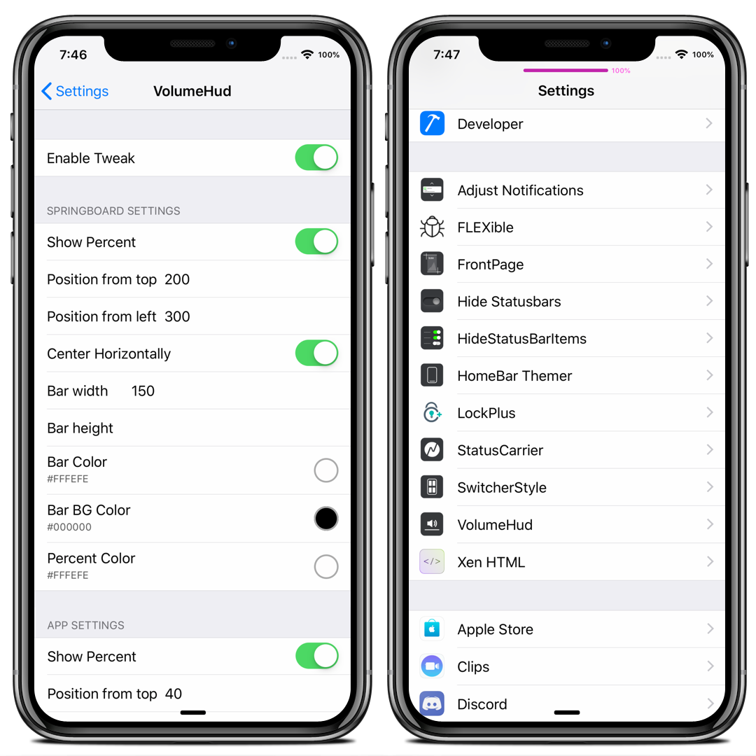 Customize the iOS VolumeHud, you can customize the SB and in Apps separately.